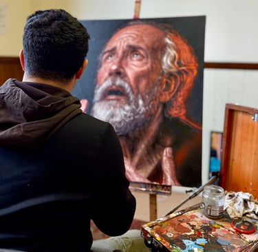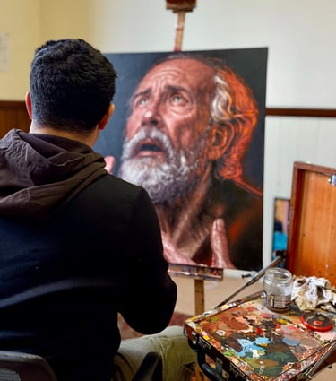 is a Cuban-born painter based in the United Kingdom whose work explores symbolism, hierarchy, and the timeless language of figurative painting. Drawing inspiration from medieval and Renaissance visual traditions, his practice seeks to reconnect contemporary audiences with images that evoke permanence, devotion, and the spiritual dimension of craftsmanship.