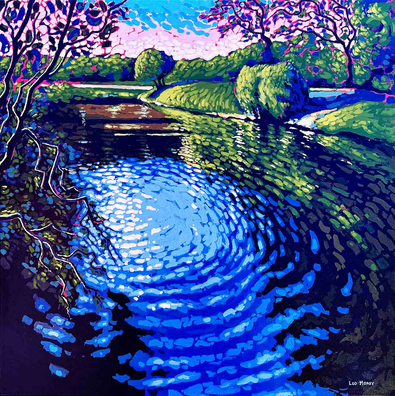 Calm waters is a vibrant painting inspired by the serene beauty of the Yorkshire countryside by Cuban artist Leo Morey.